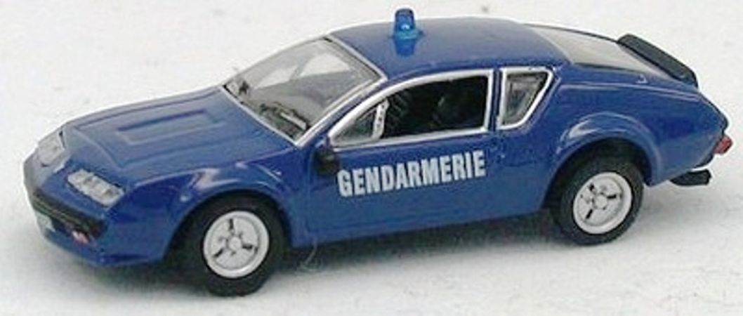 Véhicule finement détaillé Norev représentant un véhicule de la gendarmerie nationale, l'Alpine A310.