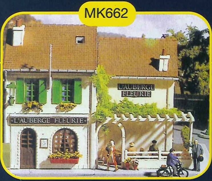 Maquette de batiments français à l'échelle HO de la marque MKD, en kit (à assembler et à coller soi-même).