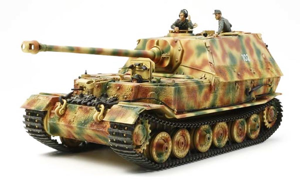 Ils servirent sur les fronts russe et italien, certains combattant jusqu’à la toute fin de la guerre, durant la Bataille de Berlin. Kit développé sur la base de l’étude rigoureuse de l’engin préservé à l’US Army Ordnance Museum. Longueur du modèle terminé : 236mm Canon de 88mm et coupole méticuleusement reproduits.