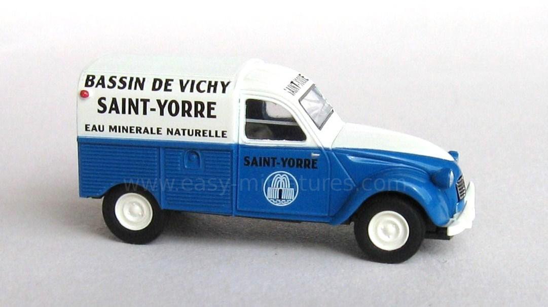 Modèle réduit BREKINA d'une citroen 2 CV fourgonnette AZU 1961 avec marquage "Bassin de vichy Saint-Yorre Eau minérale naturelle"
