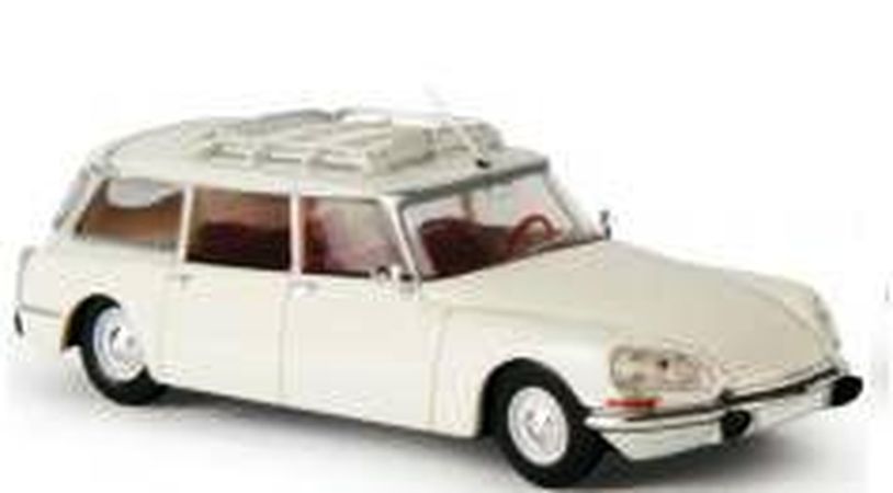 Véhicule Brékina représentant une DS de 1968 -DS21 Break - de couleur blanc à toit blanc.