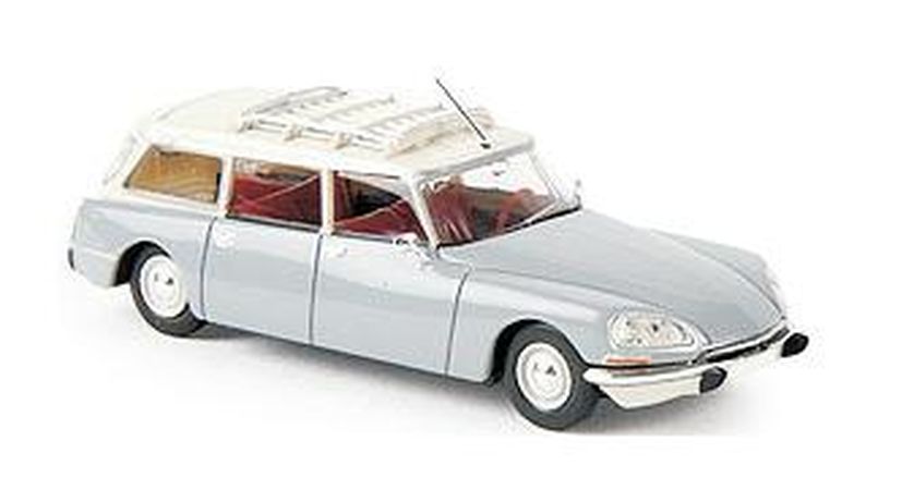 Véhicule BREKINA représentant une Citroen ID 21 break, gris argent, toit blanc