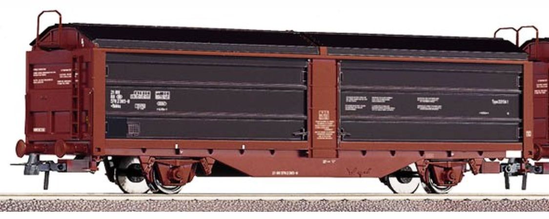 Modèle réduit Roco représentant un ensemble de 2 wagons à parois coulissantes des chemins de fer Belge. Epoque : V