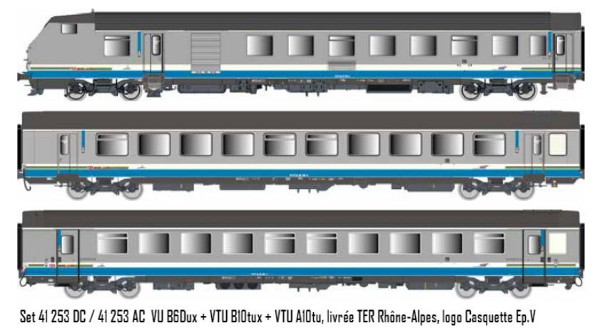 Coffret 3 voitures VU/VTU, réversible MUX, SNCF livrée Rhône Alpes