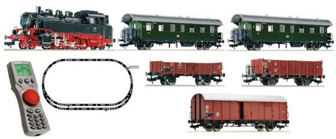 Coffret débutant avec BR 64 de la DB et un « train de marchandises avec transport de personnes » (GmP), époque III.