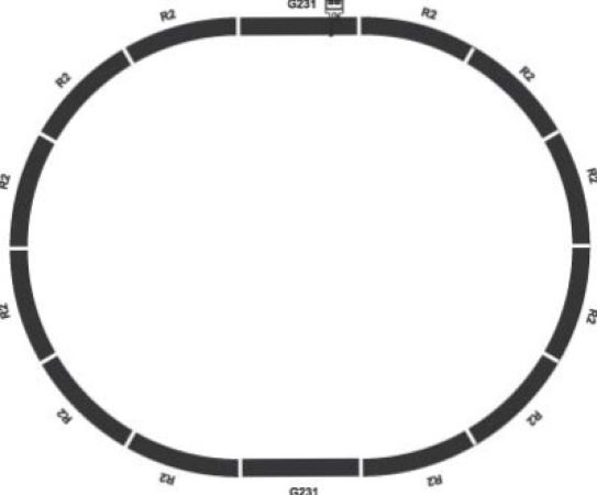 Coffret de rails de la marque PIKO permettant de réaliser un ovale d'environ 110 x 88 cm