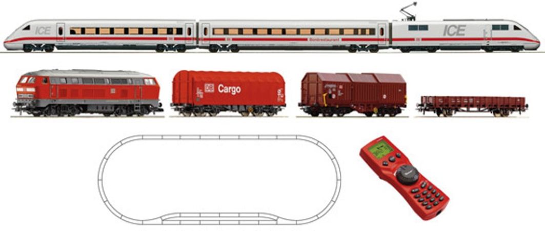 Coffret pour débutant contenant une rame ICE et un train de marchandises, se composant comme suit :