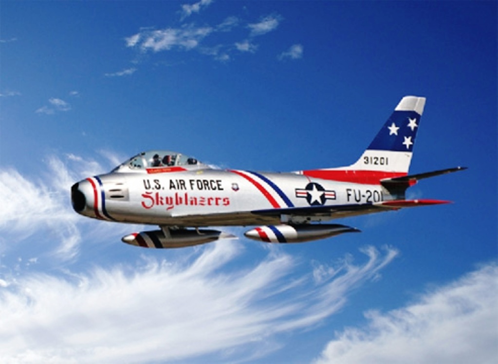 Maquette Italeri représentant un avion de combat de L'US AIR FORCE, le F-86F Sabre Skyblazers