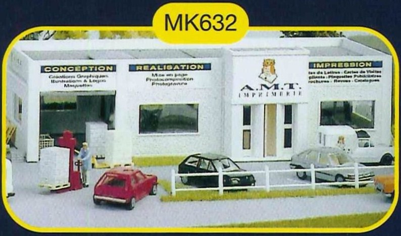 Maquette à l'échelle HO de la marque MKD représentant l'imprimerie française AMT.