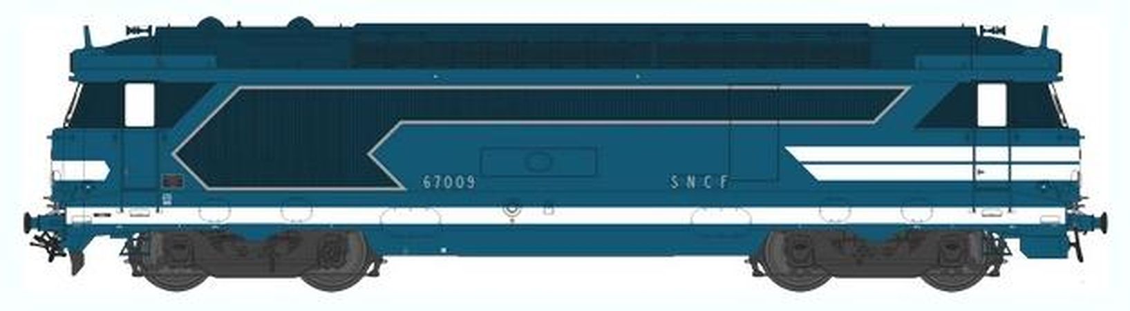 Modèle réduit REE représentant une Locomotive diesel série BB 67000 époque V, système analogique, compagnie SNCF, présentant les caractéristiques techniques suivantes :