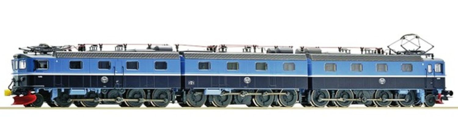 Modèle réduit Roco représentant une locomotive trois pièces électrique Dm3 1205-1235-1206 "Gloria" des chemins de fer suédois.