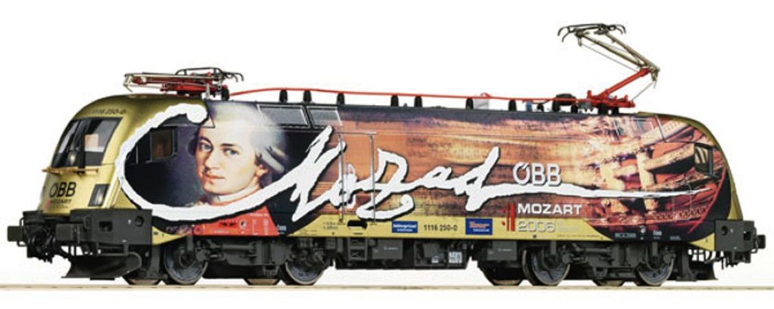 Modèle réduit Roco représentant une locomotive électrique digital RH1116 Mozart OBB sonorisée comportant les caractéristiques suivantes :
