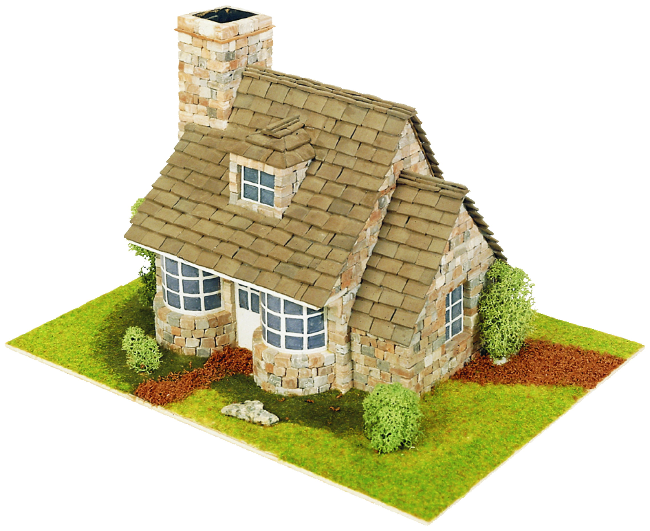 Proposée sous la référence Domus 40041, cette maquette à construire soi-même fait partie de la série "Country Side" représentant des maisons de campagne de style anglais et comprend tous les éléments nécessaires à sa construction, y compris le support de base et la végétation.