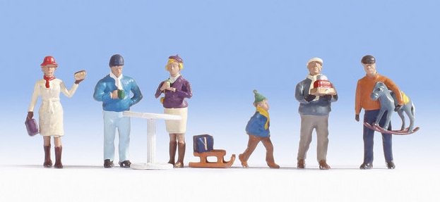 Boite de 6 figurines miniatures avec accessoires correspondant au marché de Noël