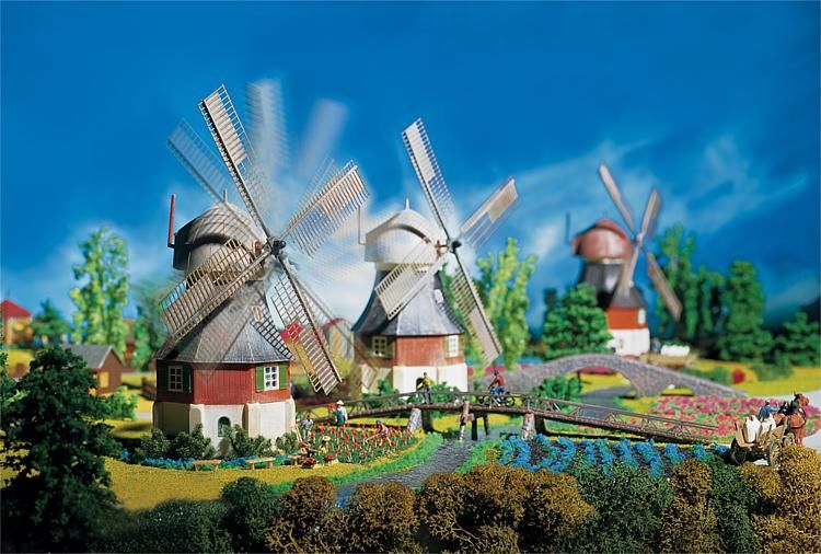Maquette de la marque Faller d'un moulin à vent avec partie habitable