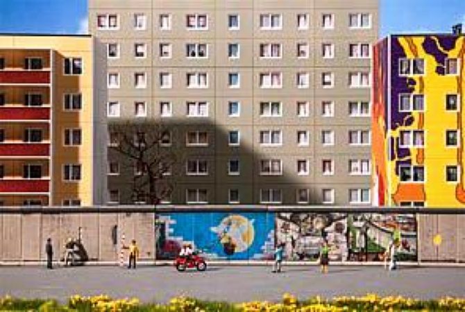 16 de ces éléments représentent des motifs artistiques de l’avenue d’art de plein air »East Side Gallery« constituant des reproductions numériques grand format.