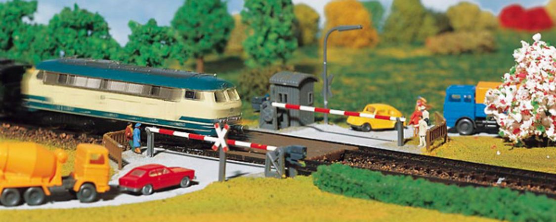 Maquette Faller représentant un passage à niveau échelle N