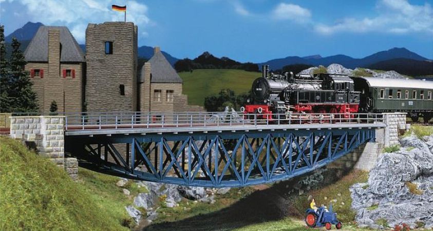 Maquette d'un pont à arc inversé de la marque Faller, à assembler soi-même.
