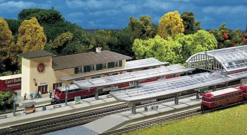 Maquette Faller représentant des quais se composant comme suit : 2 couverte et une plate-forme ouverte.