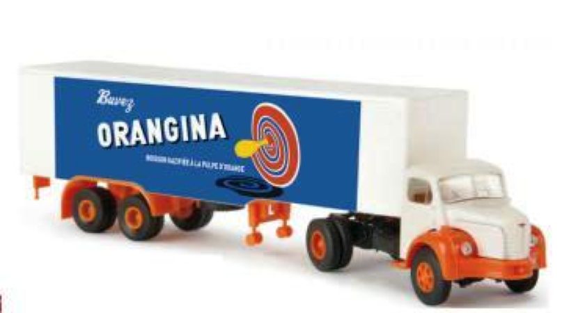 Véhicule Brékina représentant un semi-remorque Berliet TLR8 avec l'inscription Orangina