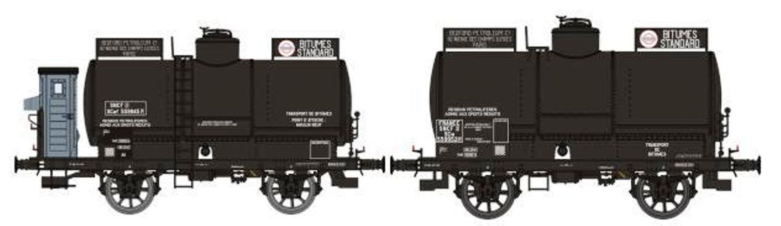 - un wagon avec Citerne rivetée, boites d’essieux U1, guérite serre-freins,réchauffeur ‘BITUME STANDARD’