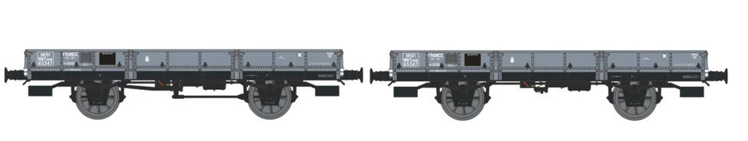 Set comprenant 2 wagons plats OCEM 29 MIDI, avec roues à rayons :