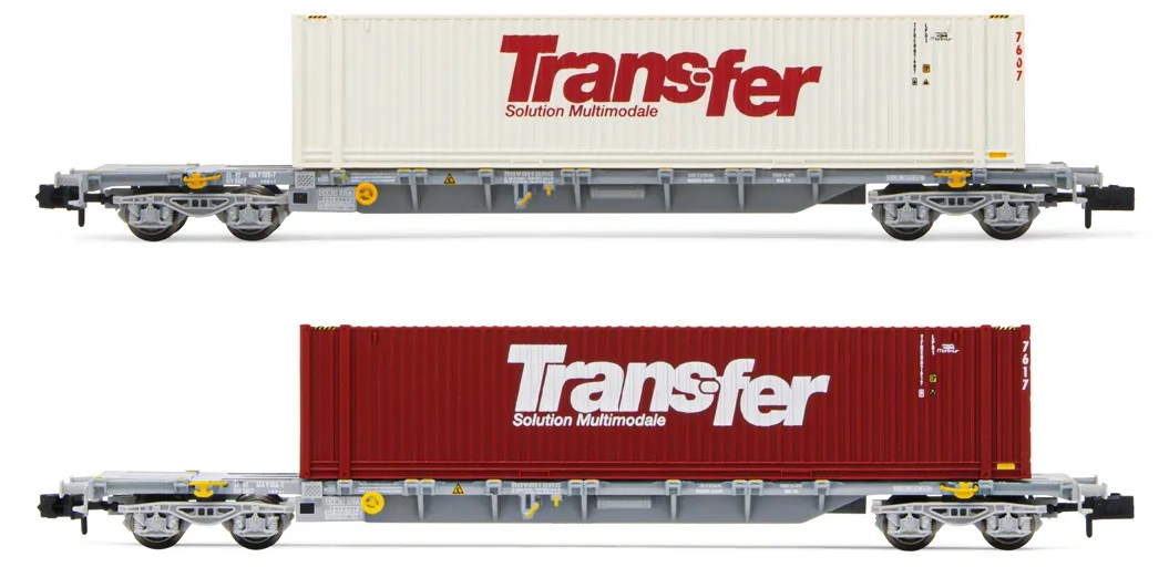 Set de 2 wagons porte-conteneurs Novatrans Sgss, SNCF «Trans-Fer»