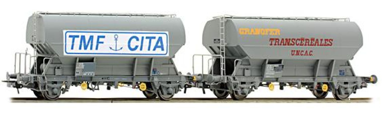 Set de 2 wagons trémies Transcéréales UNAC et TMF-CITA, SNCF