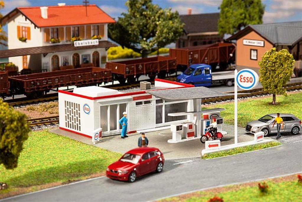 Maquette faller représentant une station service.