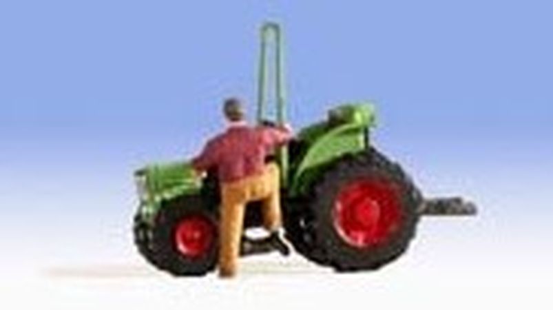 Cet article Noch 16754 représente un tracteur étroit avec son conducteur entrain de monter/