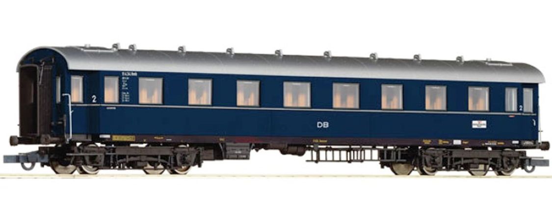 Modèle réduit Roco représentant une voiture 2e classe du type 28 du chemin de fer fédéral allemand.