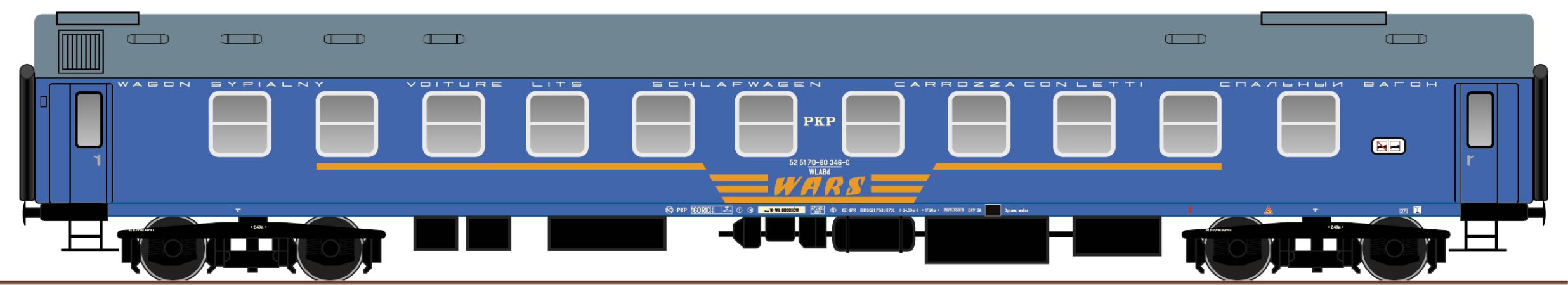 Modèle réduit ROCO d'une voiture-lit type UIC-Y-B/70 en livrée bleue des Chemins de fer polonais (PKP).