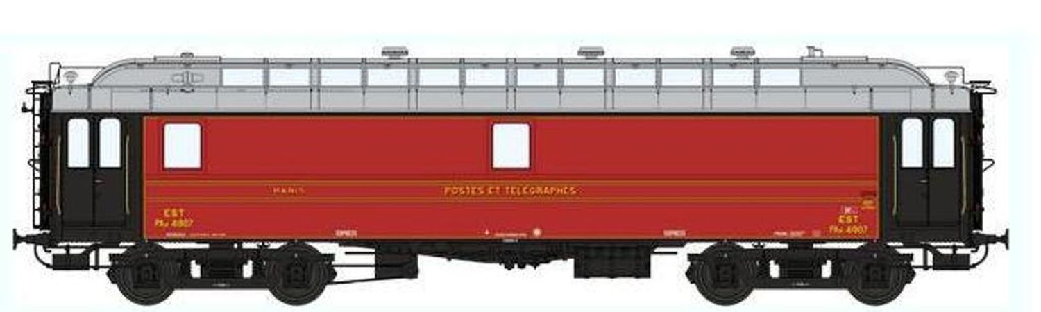Modèle réduit REE finement détaillé représentant une voiture POSTALE OCEM 16 m Ambulant Epoque II - EST présentant les caractéristiques suivantes :