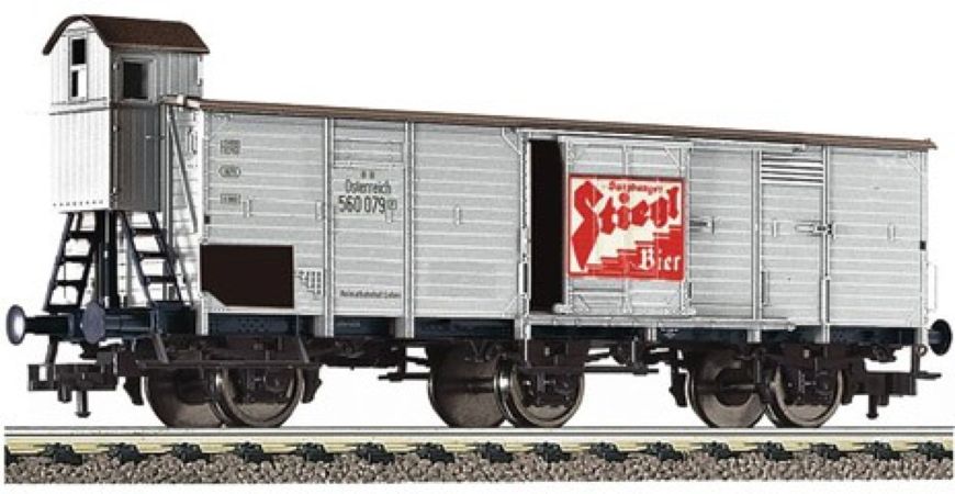 Modèle réduit Fleischmann représentant un wagon frigorifique de la brasserie Salzburger Stiegl, utilisé par les BBÖ.