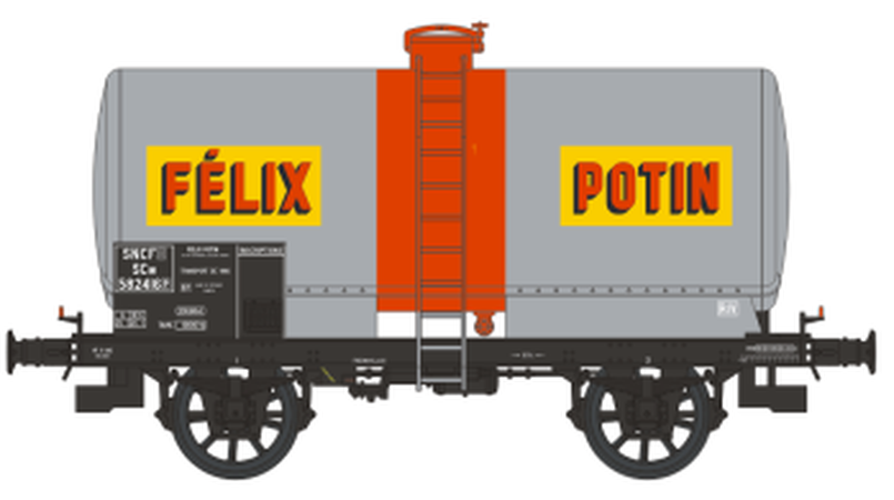 Wagon citerne OCEM 19 soudée, boites d’essieux à coussinets, freiné, ‘FELIX POTIN’ N°582416 , Ep.III