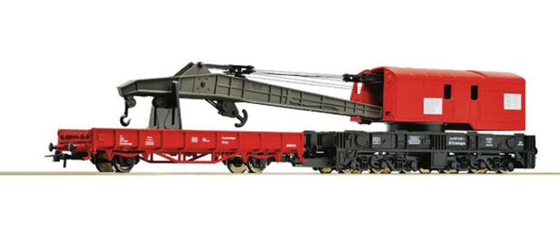 Modèle réduit Roco représentant un wagon grue de la DB