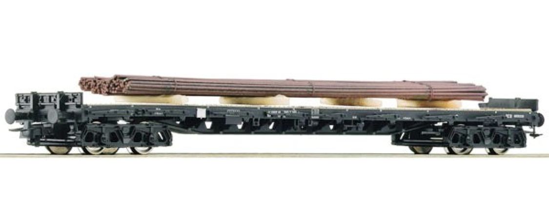 Modèle réduit Roco se composant d'un wagon plat et de son chargement des chemins de fer autrichiens.