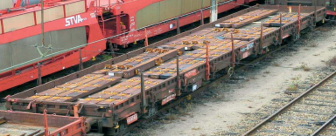 Wagon plat Remms SNCF, chargé de traverses