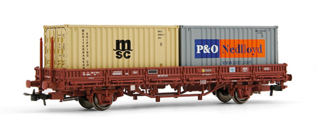 Wagon plat, type Ks, avec 2 containers, RENFE