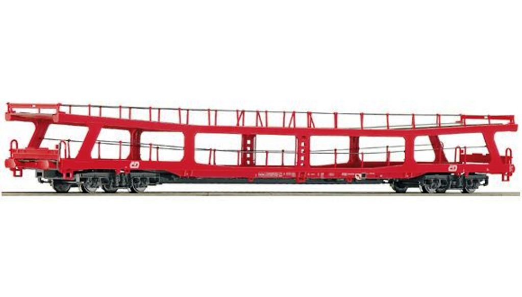 Modèle réduit Roco représentant un wagon porte auto CD circulant sur les chemins de fer Tchèque.