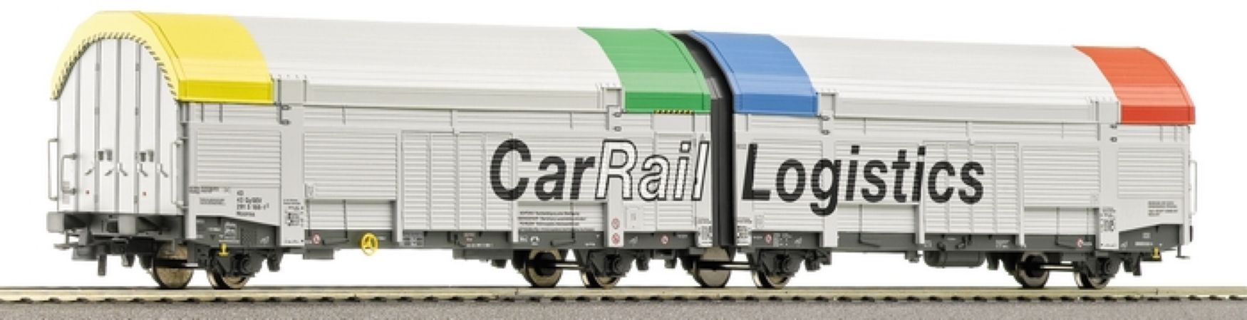 Modèle réduit de la marque ROCO représentant un wagon double moderne à 4 essieux, type Hccrrss de la compagnie privée austro-hongroise GySEV.