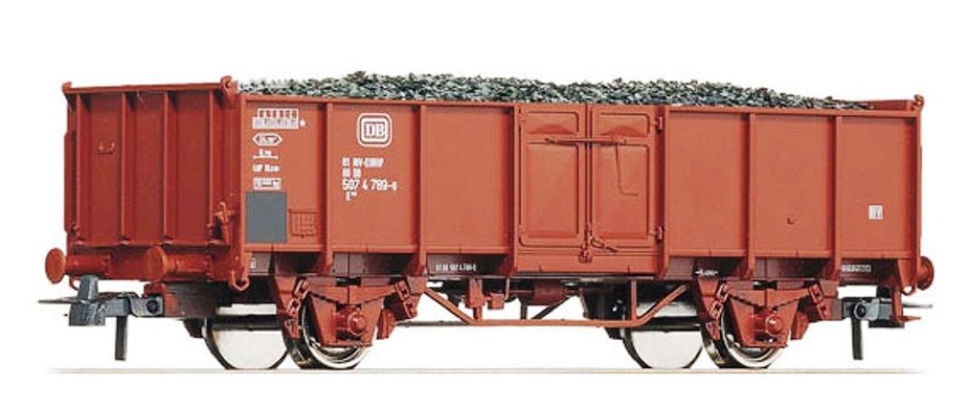 Modèle réduit Roco représentant un wagon de marchandises, un wagon tombereau charbon DB