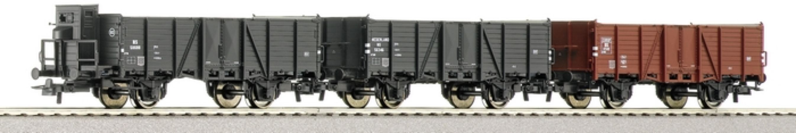 Coffret de la marque ROCO de 3 wagons tombereaux des NS à 2 essieux.