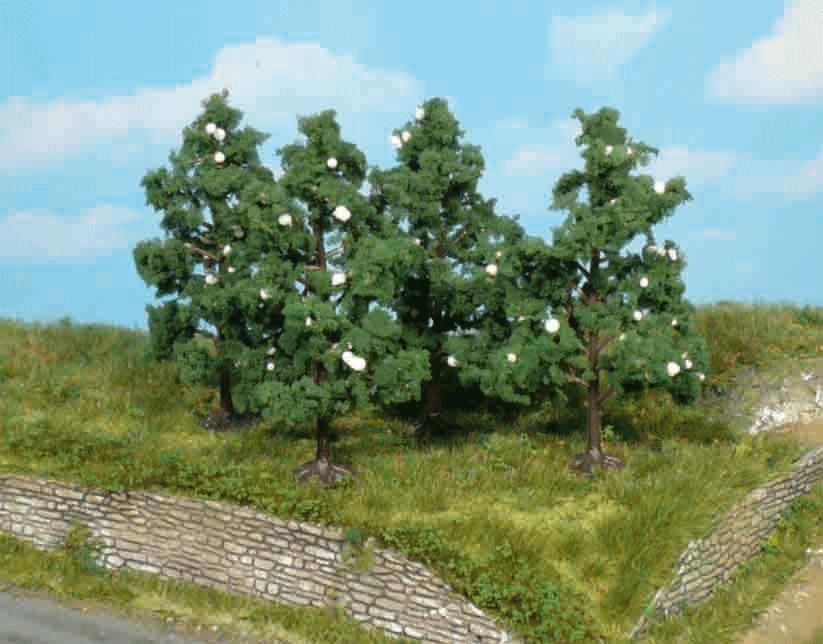 Kit de 4 arbres fruitiers vert-blanc, 8 cm.