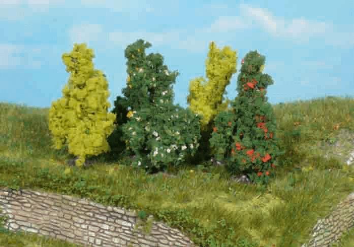 Ce kit est constitué de 2 arbustes verts clairs et 3 arbustes fleuris (voir photo)