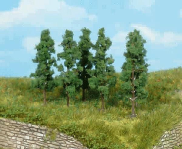 Ce kit est constitué de 6 peupliers 'noirs' (couleur vert foncé) identiques, ayant chacun une hauteur de 5,5 cm