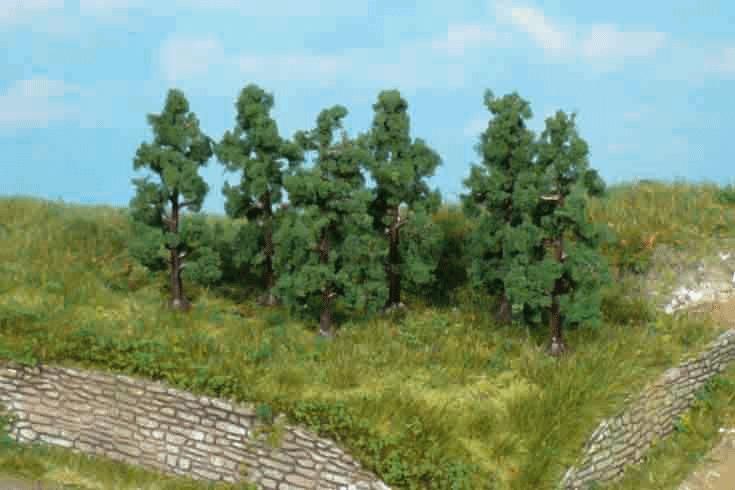 Ce kit est constitué de 6 poiriers verts foncés identiques (voir photo), ayant une hauteur de 6 cm