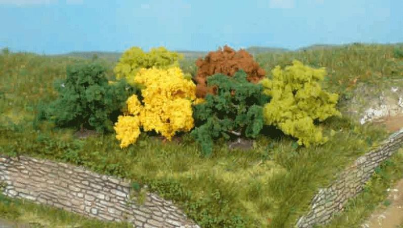 4 couleurs sont livrées dans ce kit : jaune, vert clair, vert foncé, automne (2 buissons de chaque couleur)