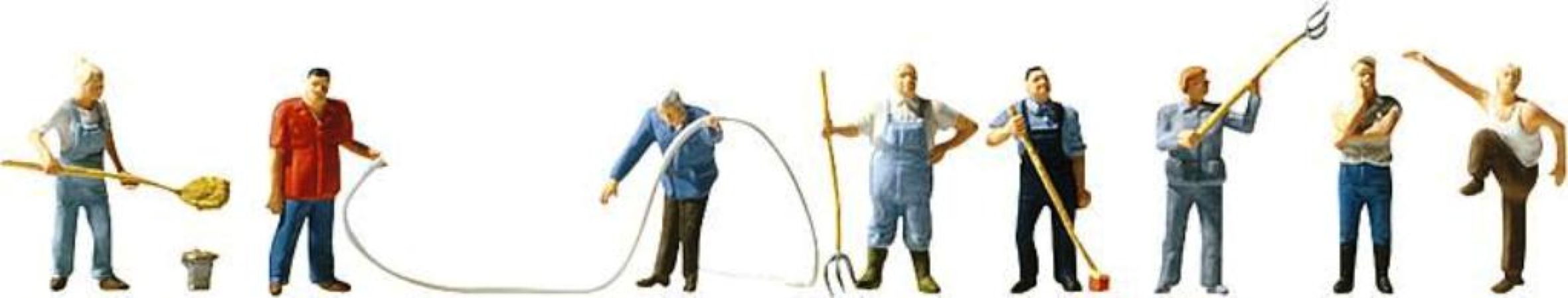 Lot de 8 figurines travaillant à la ferme.