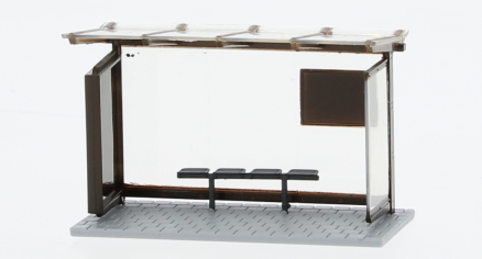 Maquette très finement détaillée d'un abri de bus de couleur marron. Modèle déjà monté, prêt à l'emploi.